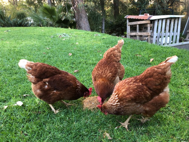 I let the chickens out and fed them directly on the lawn for a change. They were so happy!
