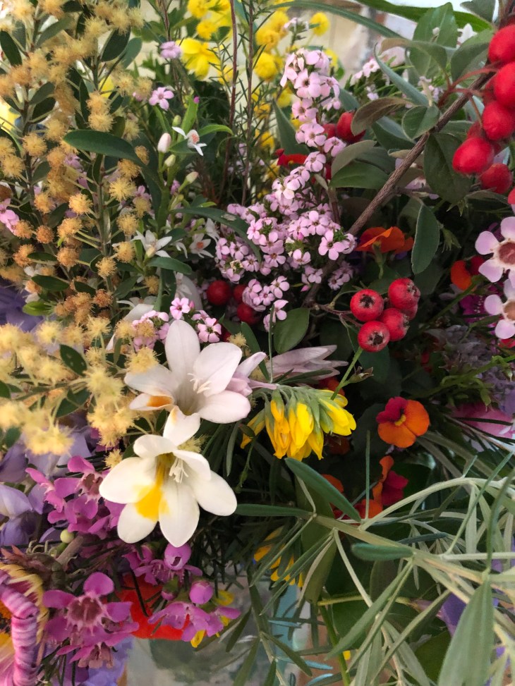 Flowers. There are flowers everywhere! Growing wild and in peoples gardens. My daughter picked these in minutes along the way when she walked home from school last week. So many types!